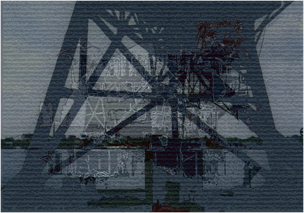 Lévay Jenő: Repülőhíd-terv X. pigment tinta vászon, 90x126cm, 1994-2000