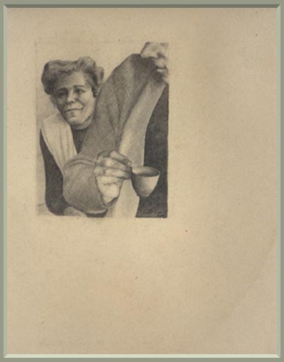 Lévay Jenő: Kézimunka, ceruzarajz, 150x105mm, 1981.